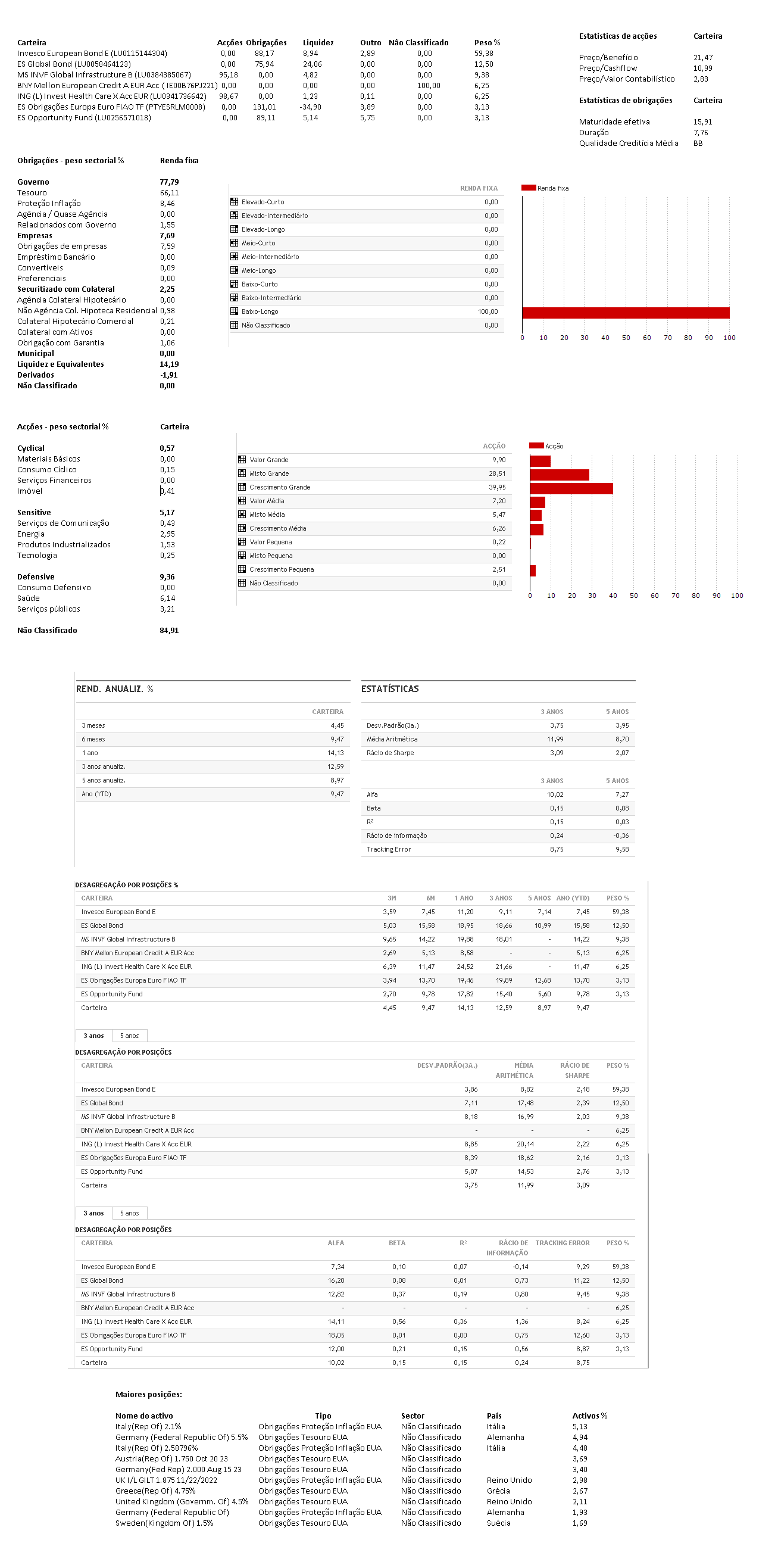 Nas obrigações Europa, juntei outro de que tinha desistido anteriormente, o ES Obrigações Europa Euro FIAO TF. Considerei também o ES Rendimento Plus FEIA mas tem uma subscrição mínima muito alta. Resumindo, a carteira agora está assim: