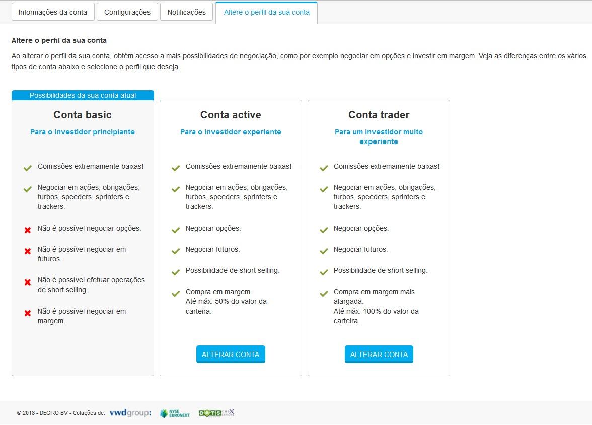 Estava a pensar alterar para conta custody como tenho visto referenciado, mas quando abro Informações da Conta só me é possível alterar para Conta active ou Conta trader. Alguém faz o favor de dizer porquê, obrigado
