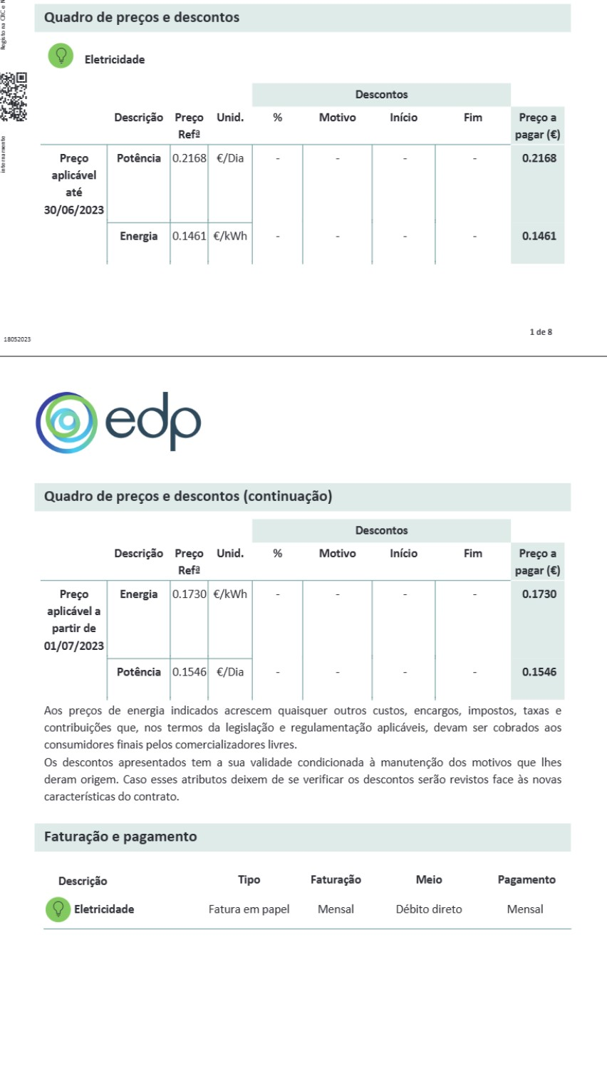 E se juntarmos a informação destas duas imagens (ambas de documentos da EDP Comercial) pode-se chegar também a esta conclusão.