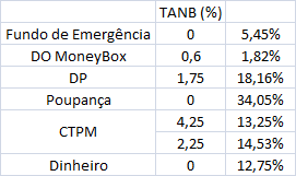 Essa conta vai ser verificada até chegarmos ao tal valor teórico do fundo de emergência (6 X despesas mensais) e depois iremos monitorizar e em caso de excesso, vamos alocar esse excesso ao investimento.