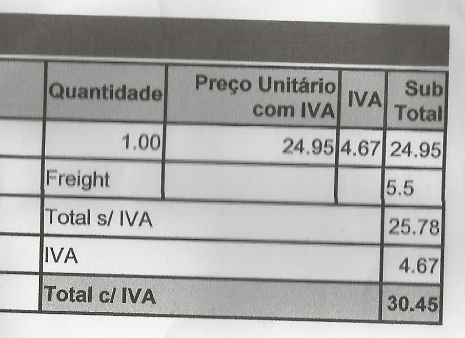 - uma linha com 24,95€ total e 23% taxa - os outros campos são automaticamente (bem) preenchidos