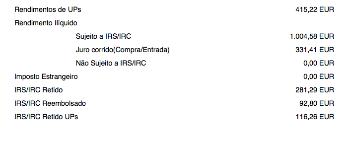 Em termos práticos, em que é que isto resulta? A meu ver penso que se tem de subtrair os 331.41€ de juros corridos aos 1004.58€ de rendimentos, e subtrair os 92.80 aos 281.29€ de IRS retido.