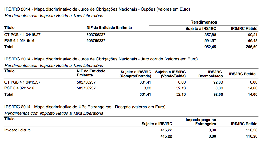 Mas mesmo assim o meu apanhado nao coincide com os valor da declaração de englobamento do BIG.