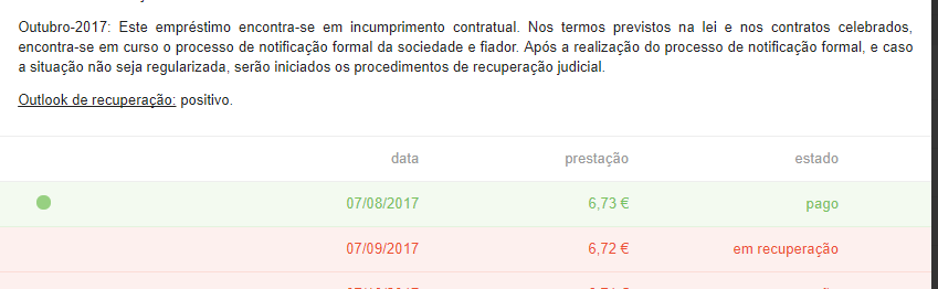 Basta 1 dos ativos entrar em recuperação, andas a reinvestir para financiar o credito mal parado.... E será necessário diversificar muito .... se tens 2 ou 3 ativos em recuperação com taxas de 4% precisas rezar ao nosso senhor e ter uns 200 ativos sem perdas para ganhar dinheiro.....