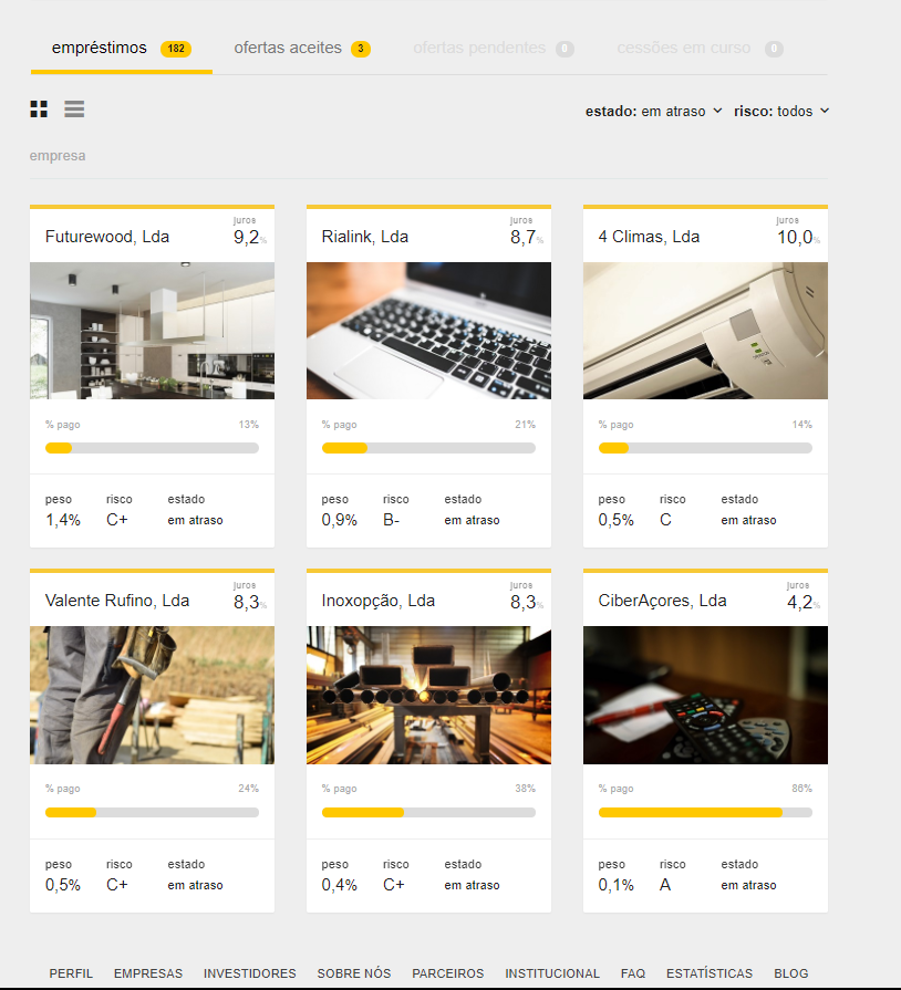 No caso da Investly, uma P2P mais parecida com a Raie pois só empresta a empresas, o "esforço" que fazem para a recuperação dos empréstimos é muito maior, bem como a informação que dão aos utilizadores sobre as ações tomadas.