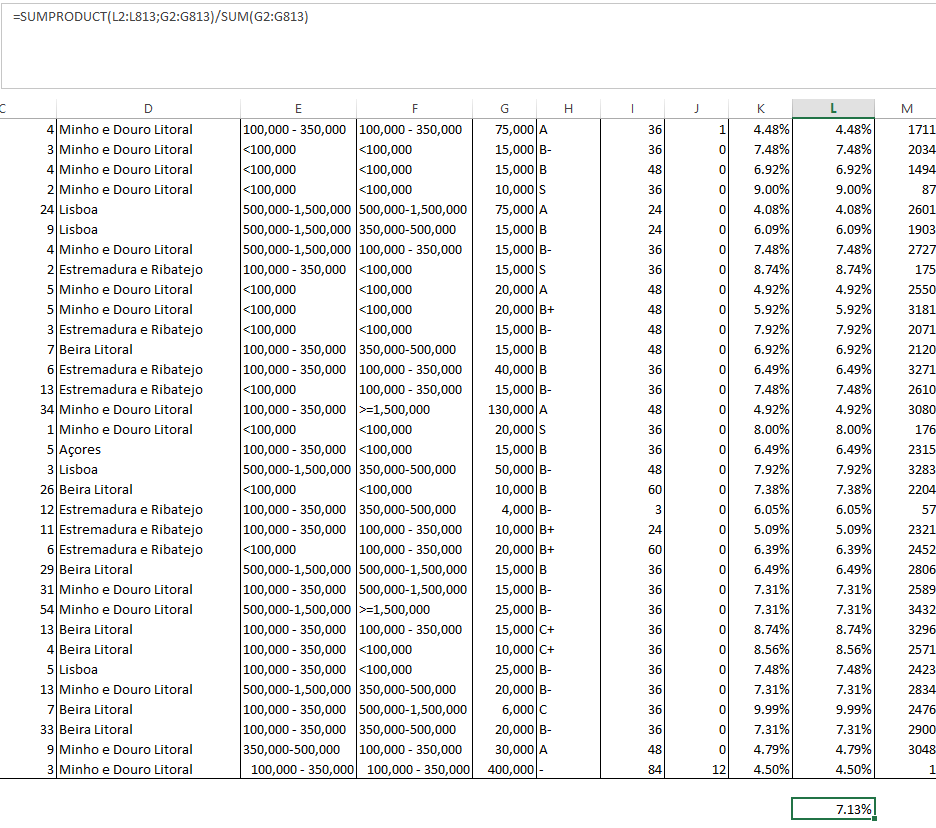 O calculo dos 7% não estou a fazer por aquele quadro, porque no inicio tinha pouco volume de empréstimos, já tive mais (pico de valor durante cerca de 1 ano, sim) e agora tenho um bocado menos. Mas não se pode olhar par aquele numero.