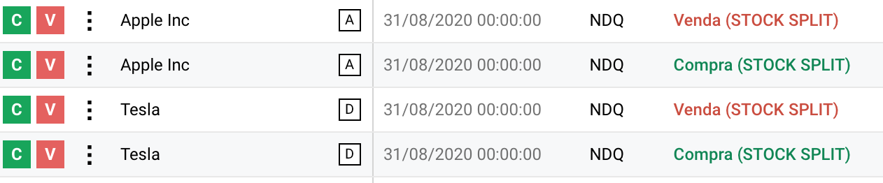 Sim..... Na minha carteira apareceram-me as novas quantidades de ações da Tesla e da Apple.