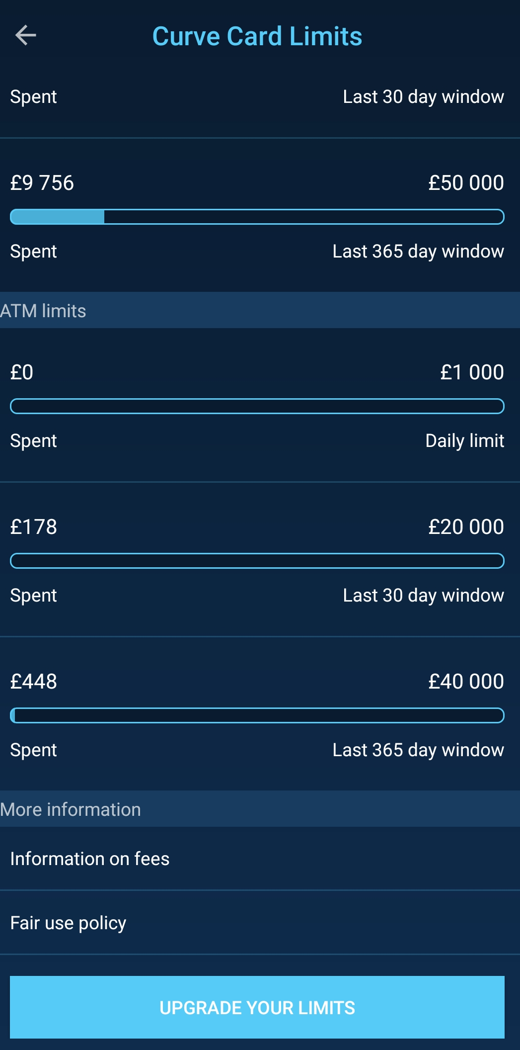 Só acrescentar que este limite de 200€ (por mês de calendário e não nos últimos 30 dias) do Curve é para cartões de crédito. O limite a débito é de 10 levantamentos por mês sem limite de montante levantado. Os levantamentos a débito não contam para estes 200€, mas o limite de 10 levantamentos é global, conta tudo