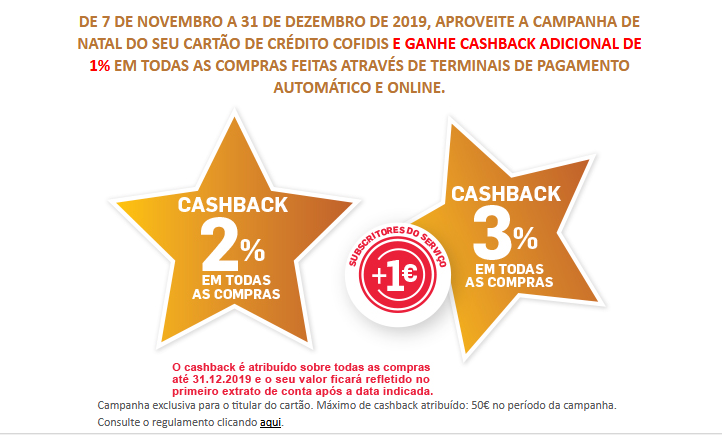 Um UPDATE para informar que o COFIDIS com PAGAMENTO a 100% está a contabilizar CASH-BACK extra relativa à campanha de natal...