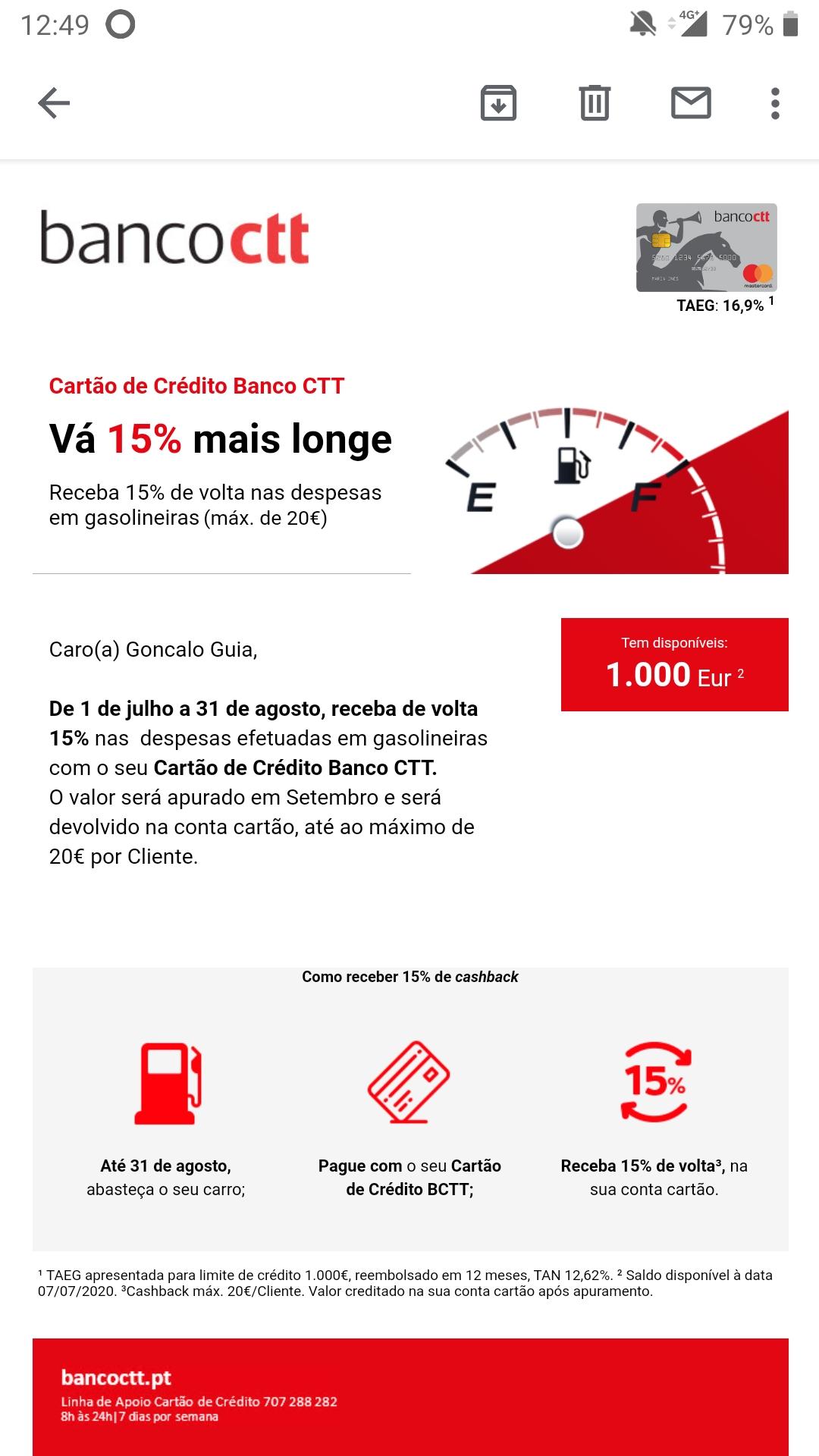 Adicionado agora no Extrato: Tive 20€ de cashback em 150€ de gasolina gastos com o cartão.