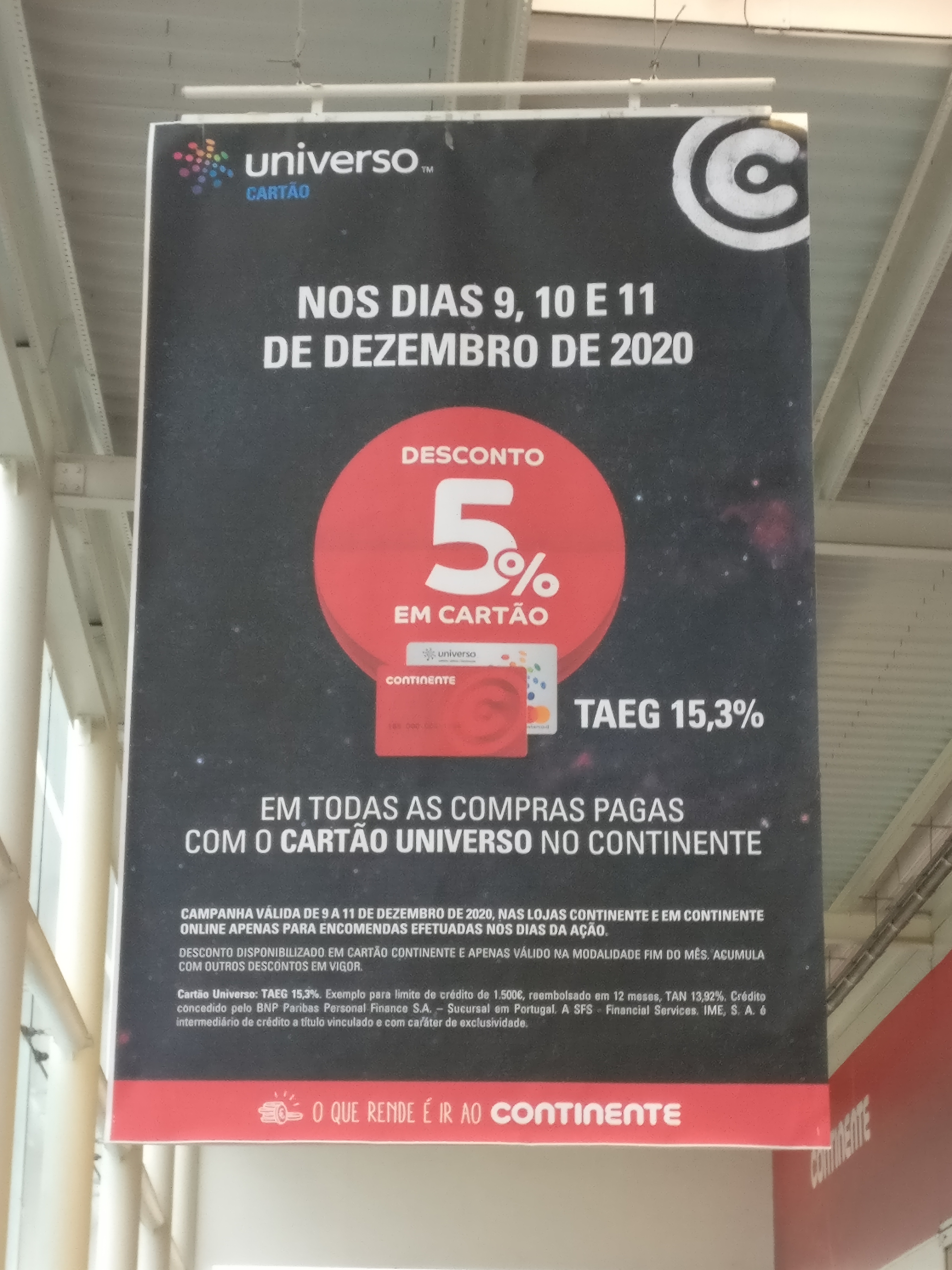 Se tiveres Cetelem, consegues o mesmo (5% cashback + cupão de 15% do Continente).