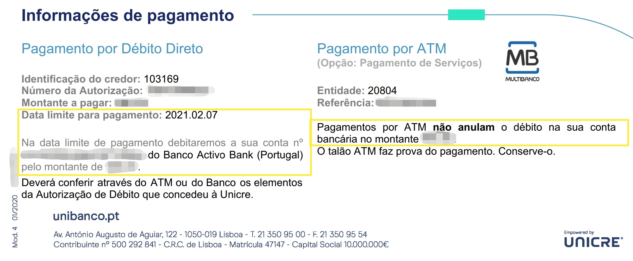 Consultei os meus débitos diretos no banco e não consta a entidade Unibanco.... Será normal devo ligar para ambas as entidades para perceber o que se passa?