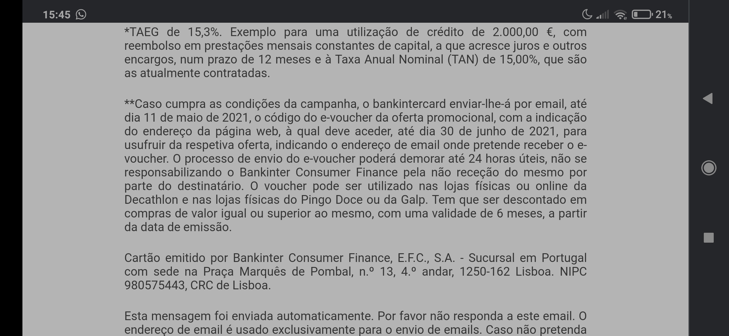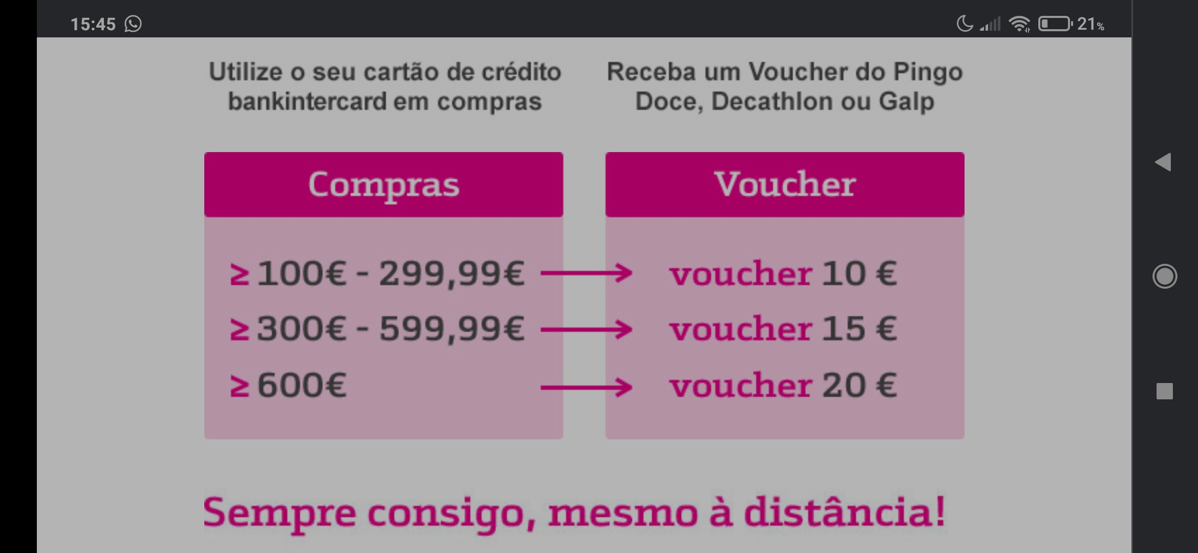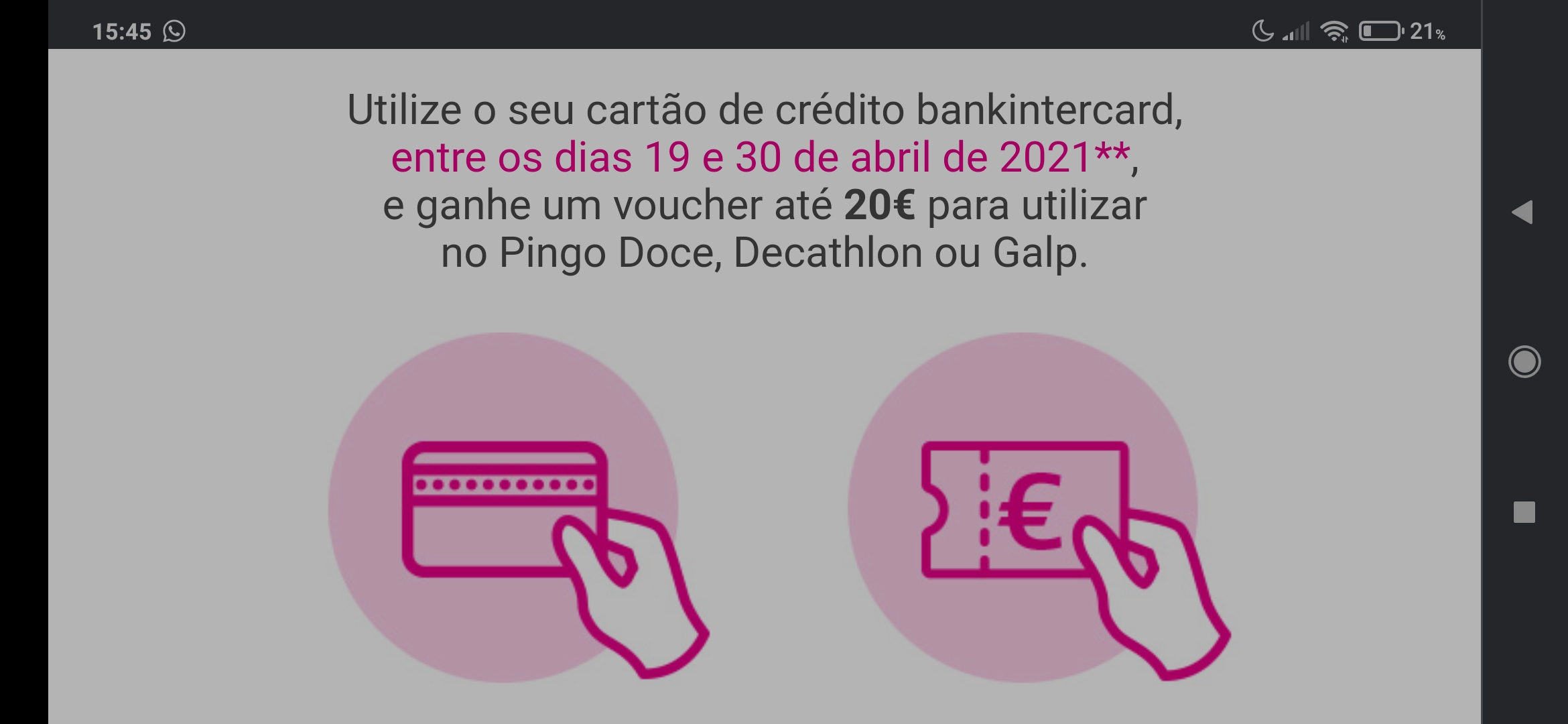 Liguei para o apoio a clientes do Bankintercard Vodafone, já tenho mais respostas.