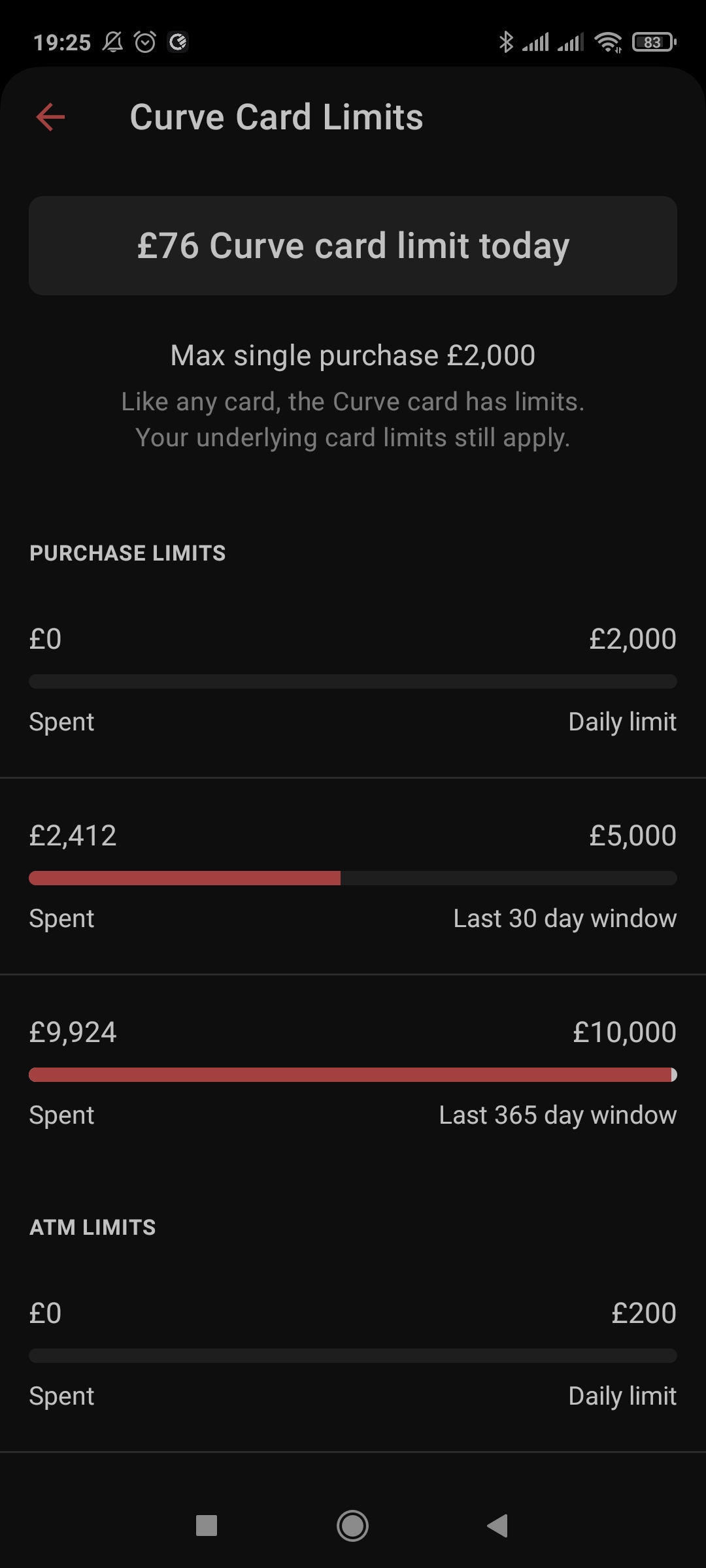 A limitação é do curve, acho que há um valor anual para transaccionar com o cartão deles, que desconhecia (só sabia do valor diário).