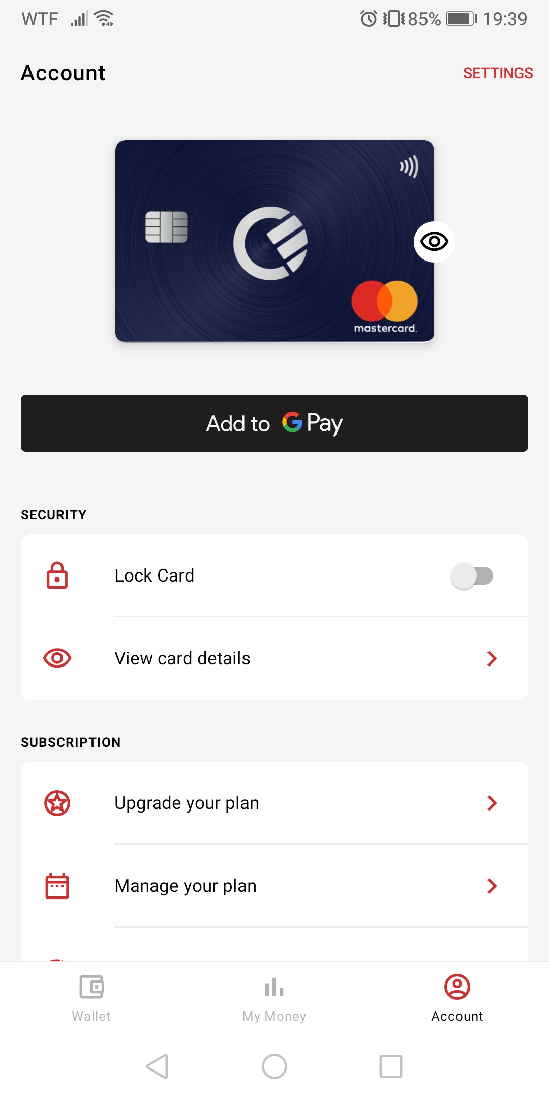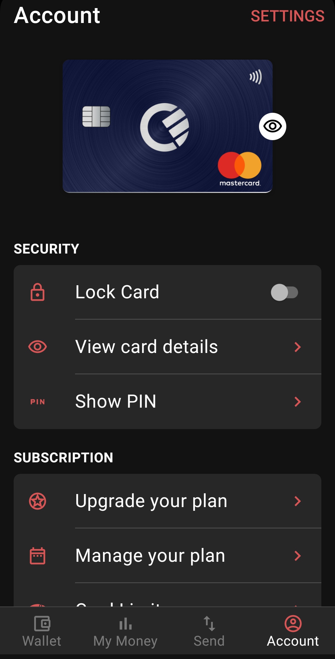 Eu quando carrego aí onde diz "lock card" estou a bloquear o cartão virtual ou o físico?