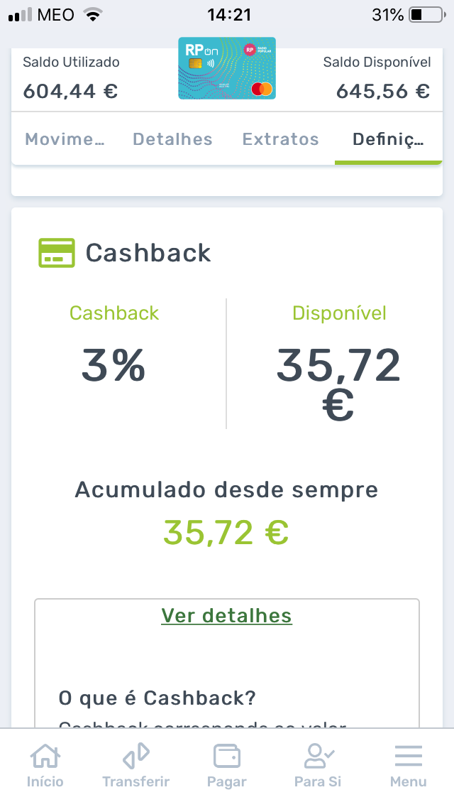 Mas só tive 6.5€ de Cashback de 130€ em compras. Tudo em supermercados e combustível.