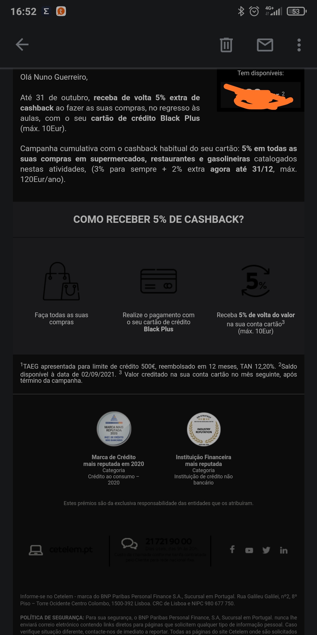Sim, também vem referenciado no email. Excelente notícia. Cetelem nunca desilude.