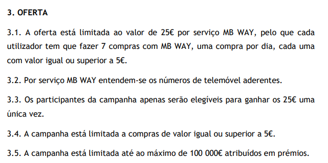 MBWay aparentemente está a oferecer 25€ por cada compra diária no mínimo de 5€/dia x 7 dias
