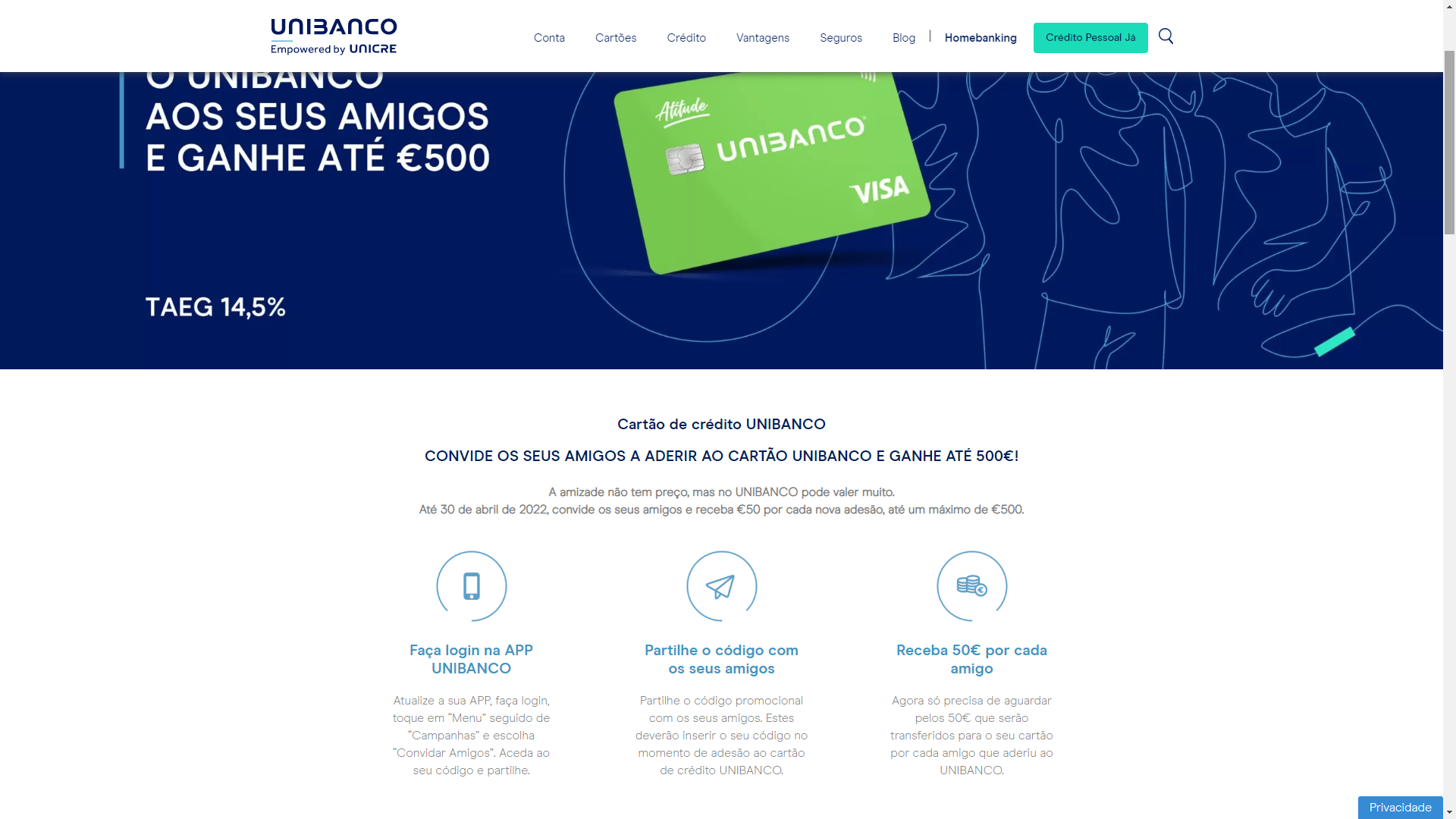 Link para aderirem: https://www.unibanco.pt/convidado-unibanco/?promocode=MGM02174