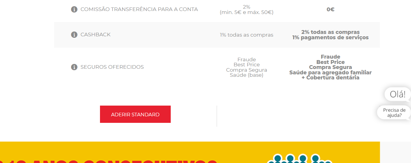 login -> cartao de credito - gestao do cartao/mais por 1€ - aderir ao standard (caso estejas na modalidade +1€)