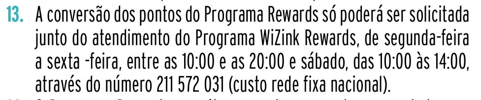 As ofertas abrangidas pelo Programa, bem como o respetivo número de pontos necessários para a conversão, encontram-se disponíveis em www.WiZink.pt na página “Cartão de Crédito WiZink Rewards”,