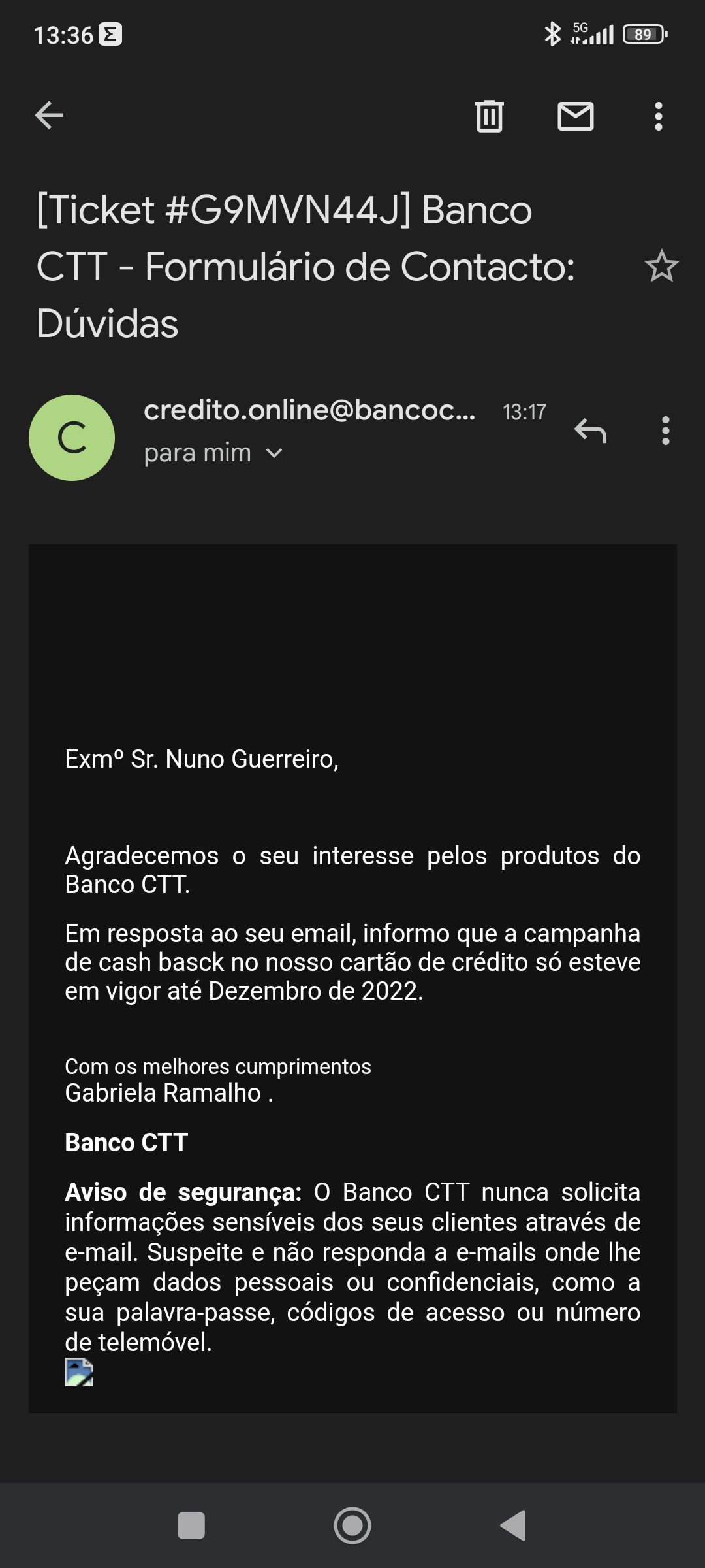 Fica a confirmação que o cartão ctt terminou o cashback em 2022.