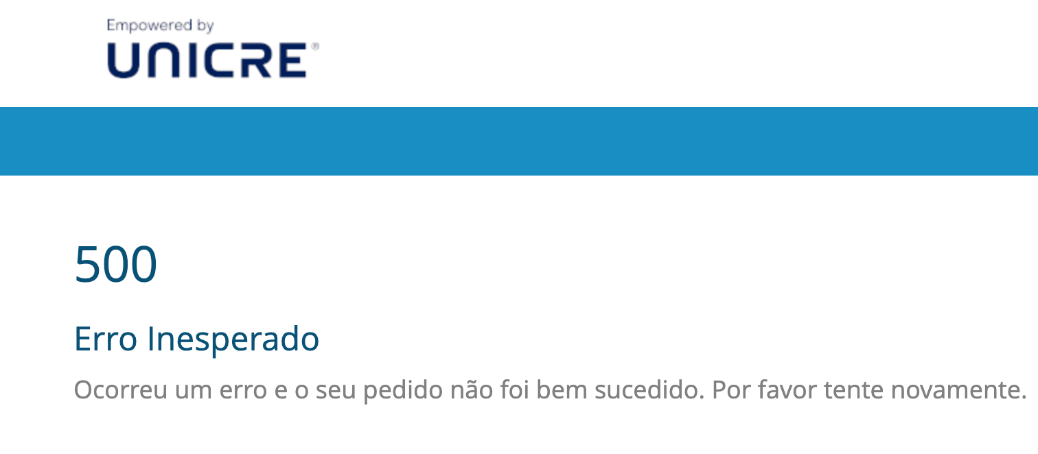 Fiz todo o processo normalmente, até à parte de assinar os documentos. Depois disso e de receber o codigo para assinatura no telemovel, ao submeter, vou ter diretamente a esta pagina de erro