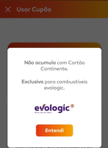 Tanto que ao seleccionar o cupão na App Evodriver este informa logo "Não acumula com cartão continente"