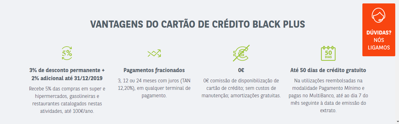 É com grande entusiasmo que apresentamos em exclusivo: Black Plus, o seu novo cartão de crédito Black.Com um novo design, mais elegante, o seu cartão é agora mais moderno e oferece-lhe ainda mais vantagens. A partir de 25/06/2019, conte com mais flexibilidade, tecnologia e rapidez no pagamento das suas compras