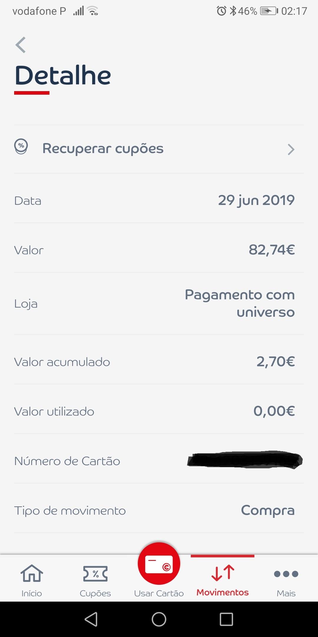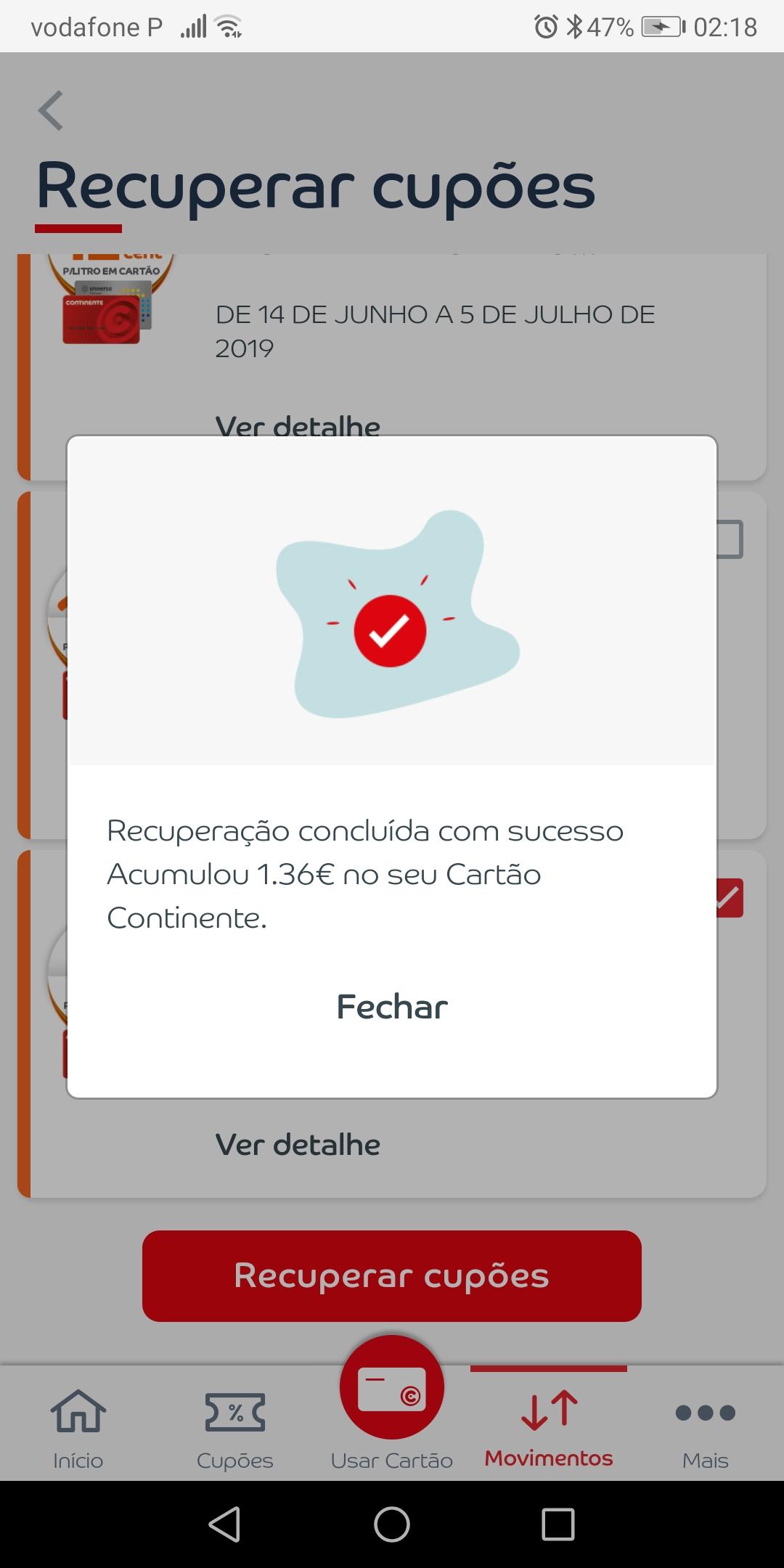 Usei pela terceira vez o cupão de 0,06€ que me deu mais 1,36€.
