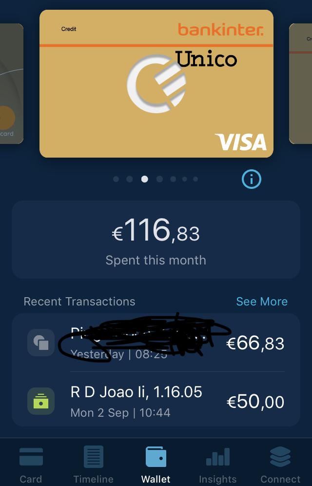 Um outro tema que não tem a ver com cartões, tinha uma poupança de cerca de €8000 numa conta a prazo que particamente não dá juro, com a promoção do Bankinter da conta ordenado com juro a 5%, meti lá €5000 (limite para darem os 5% de juro) e pus €800 a serem transferidos na minha conta habitual para lá e a voltarem passados 3 semanas, porquê? Nos termos e condições desta conta, diz que para ser considerado uma conta ordenado, basta ter créditos de €800 por mês, já recebi ao final de 6 meses €121 de juros (menos 28% de imposto) e apenas estou a usar €5800 euros de dinheiro que já estava parado de qualquer forma. programei as transferência de forma automatica, nem tenho de me preocupar com isso.