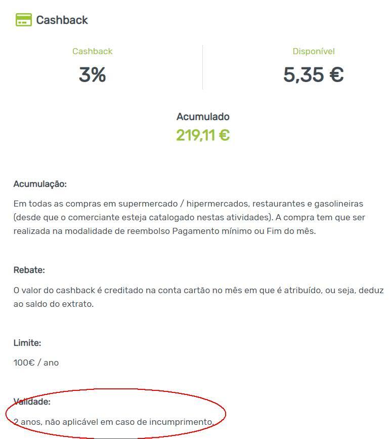 O que te aparece na pag de cashback do cetelem? Onde tenho o circulo a vermelho? Recentemente vi estes 2 anos mas já tinha visto noutro lado.