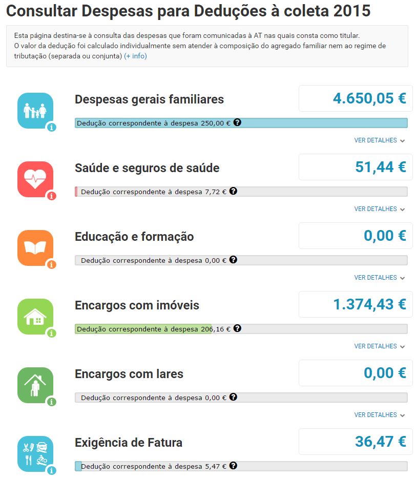 O IRS de 2015 foi uma grande desilusão em vários aspetos, mais concretamente em termos de deduções provisórias em IRS. O controlo destas deduções é feito no site do efatura que nos apresenta de forma muito simples e apelativa as várias categorias.