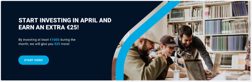 Para os investidores que se registem e invistam 1.000€ na plataforma entre os dias 8 de abril e 8 de maio, a somar aos 0,5% de prémio habituais, a EG soma 25€ de bónus.