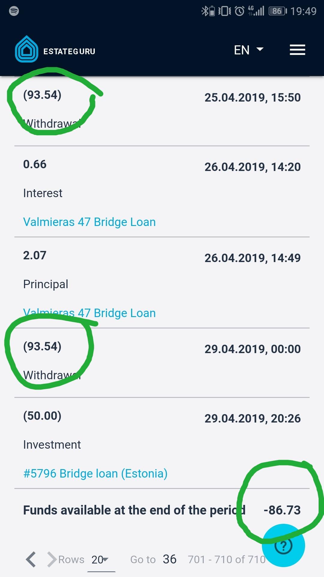 Ainda hoje se estava a falar de problemas na plataforma da grupeer e acabei de perceber que a estateguru me fez um pagamento em duplicado a semana passada. Hoje fizeram um acerto e passei a ficar com um valor negativo na conta.