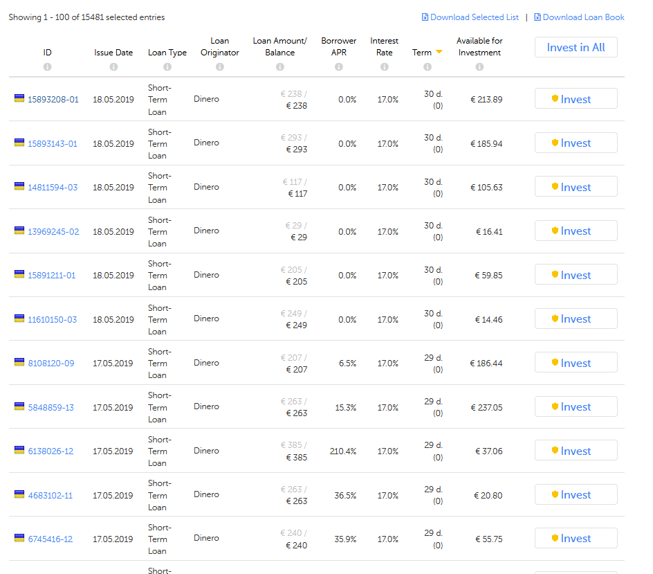 A ExpressCredit tem tido loans do Botswana (que têm uma taxa de lates muito baixa) a 15,1% - Tem sido vê-los voar... é interessante tambem verificar que alguns investidores têm colocado quantias de 200, 300€ em cada um desses loans. (ehehe para vender mais tarde no MS)