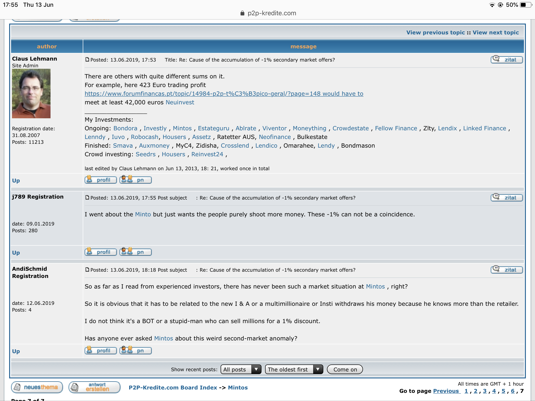 Aproveitei para ler o tópico no Fórum Alemão e estão a invocar uma teoria para explicar a questão do desconto em SM com este volume. Na opinião deles, pode ser a própria Mintos, para alimentar o Invest and Access. Lembrei-me que na conferência em Riga o CEO da Mintos realmente falou em atuarem como Market Maker.