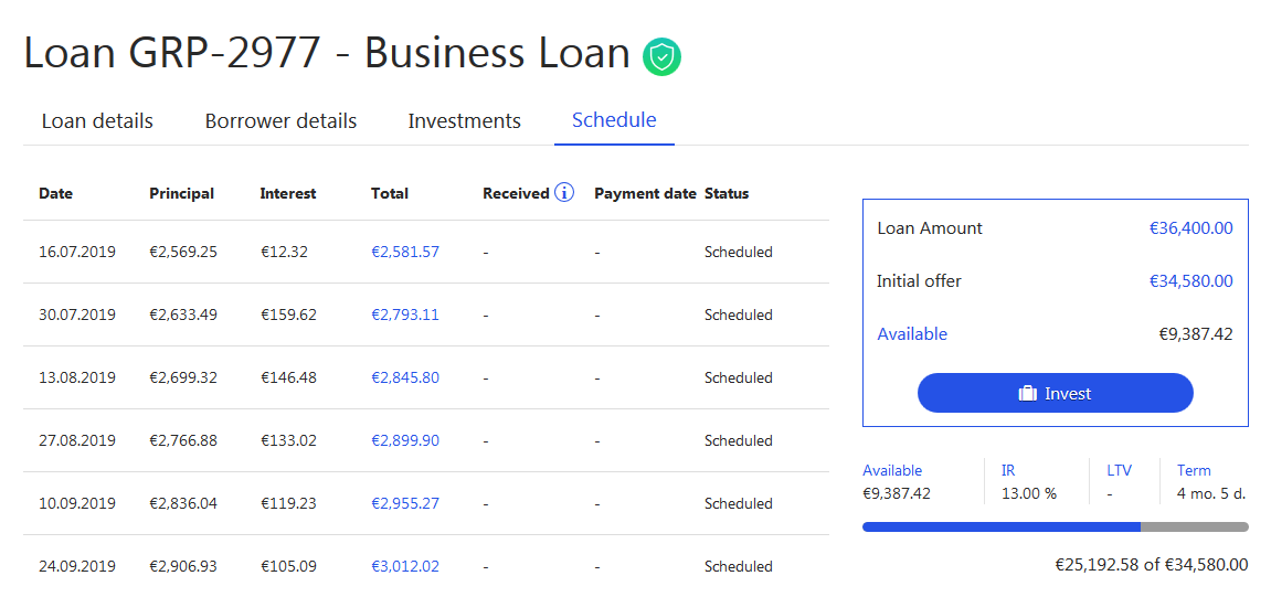 Por exemplo, este loan listado na Mintos em 08.07.2019, não pagava nada até 16.05.2022 (pois já tinha tudo recebido até 16.04.2022) = quase 3 anos sem os investidores receberem alguma coisa: