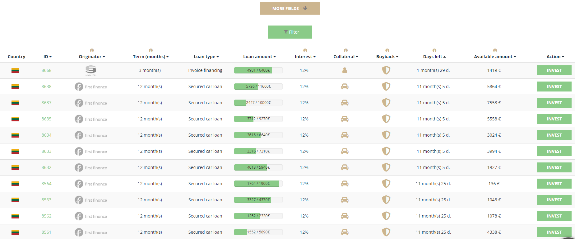 Estou a reforçar na Lenndy, muita coisa a 12% e a menos de 1 ano (principalmente car loans)