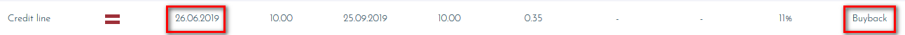De momento não tenho nenhum em condições de Buyback, o Credit Line mais antigo que tenho é de 26/09/19. Normalmente, activo o buyback após os 120 dias, mas apenas para rodar os empréstimos.