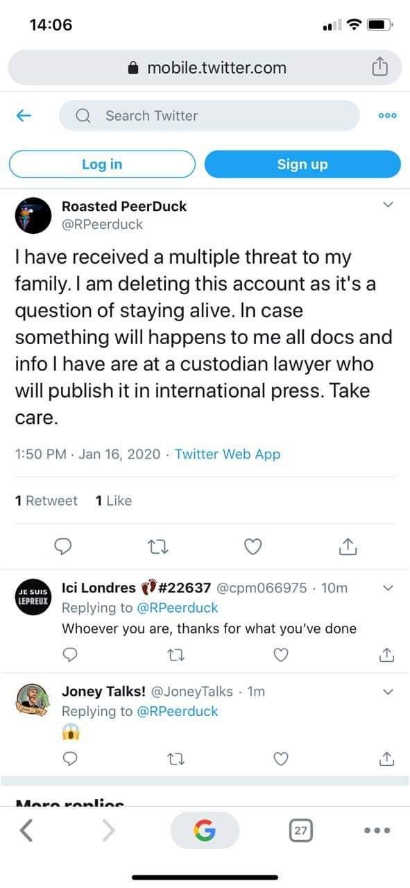 Julgo que não. Os assassinos são referência às conversas nos canais de Telegram de contratação de sicários para lidar com as chefias da Kuetzal, e o tweet do pato menciona que recebeu ameaças de morte.