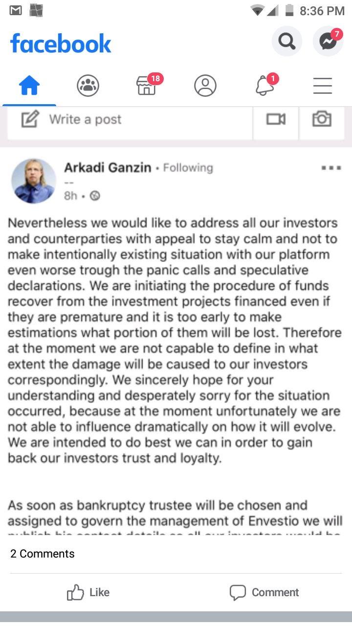 Obviously we have to declare our technical bankruptcy due to inability to perform our current financial obligations towards counterparties facing such a massive withdraw requests from investors caused by panic and bad publicity trough internet and various media channels.