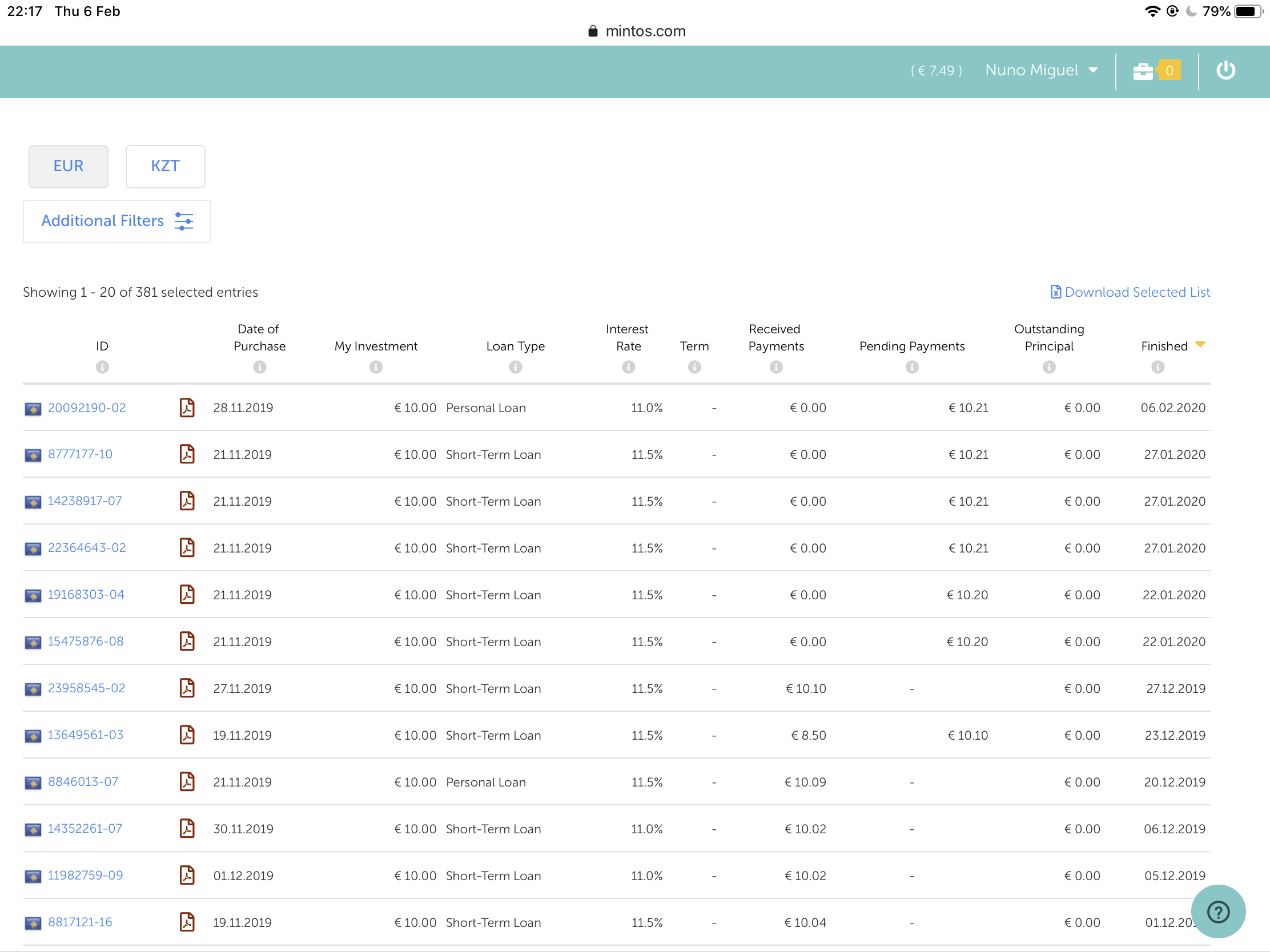 Mintos (20%): Entrei nesta a cerca de 3 anos. Acho que desta plataforma não há grandes comentários que eu possa acrescentar ao que já esta dito. Atualmente mantenho a posição que possuo. Tenho um XIRR de aprox. 11%. Para quem quiser o convite www.mintos.com/en/l/ref/7BGY8S