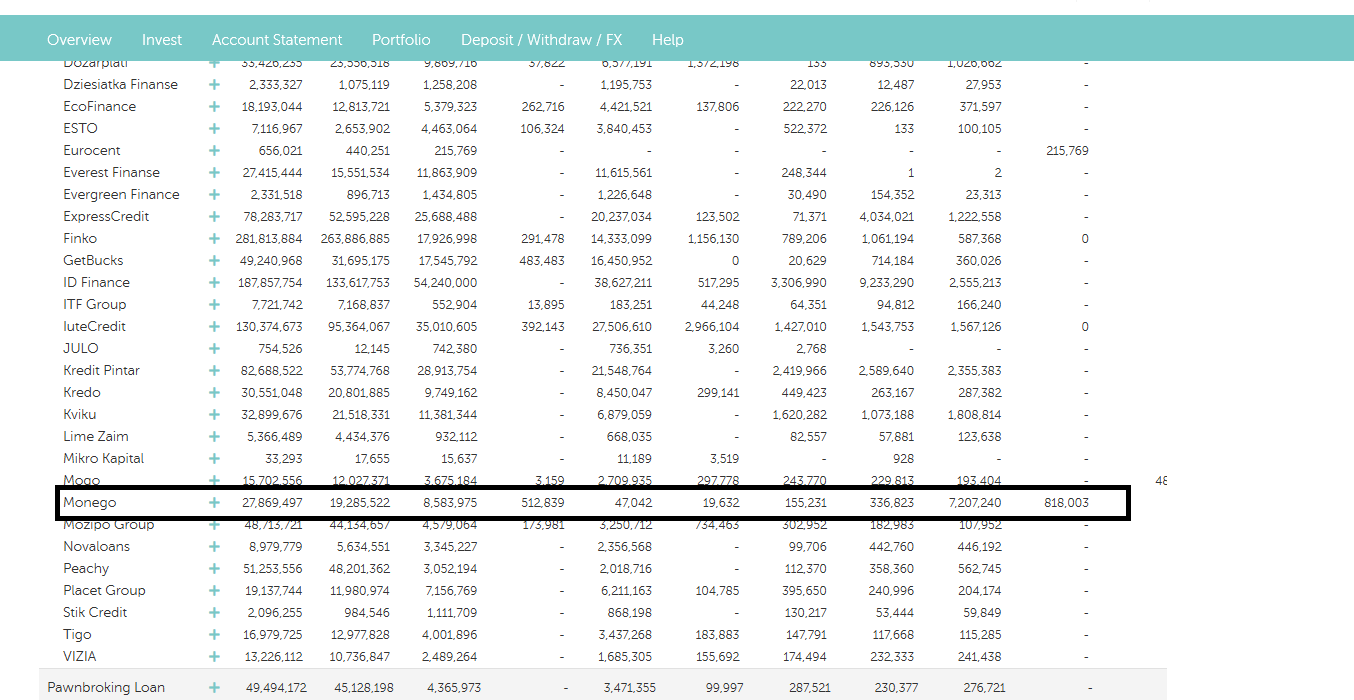 só faço isso quando têm imensa procura/rotação  que foi este o caso,  só o tinha feito em Junho de 2019 com a Kuki , nos WOWWO  ninguem os quer, dá que pensar que nem com 5% de cashback os comprava .... há loans e loans de momento preocupa-me os SunFinance Shorterm Dinamarca e Kazaquistão que estão com uns bons milhões em Pending ,