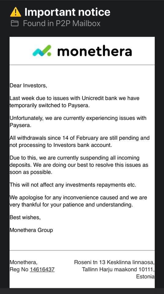 O Fintera Group é uma instituição de caridade, pois segundo a Mintos não chegou a "adquirir" a Monego, mas vai pagar os +9 milhões EUR de loans existentes da Monego...