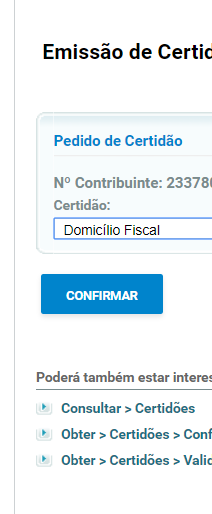 Vai a Obter/Certidões/Domicílio Fiscal