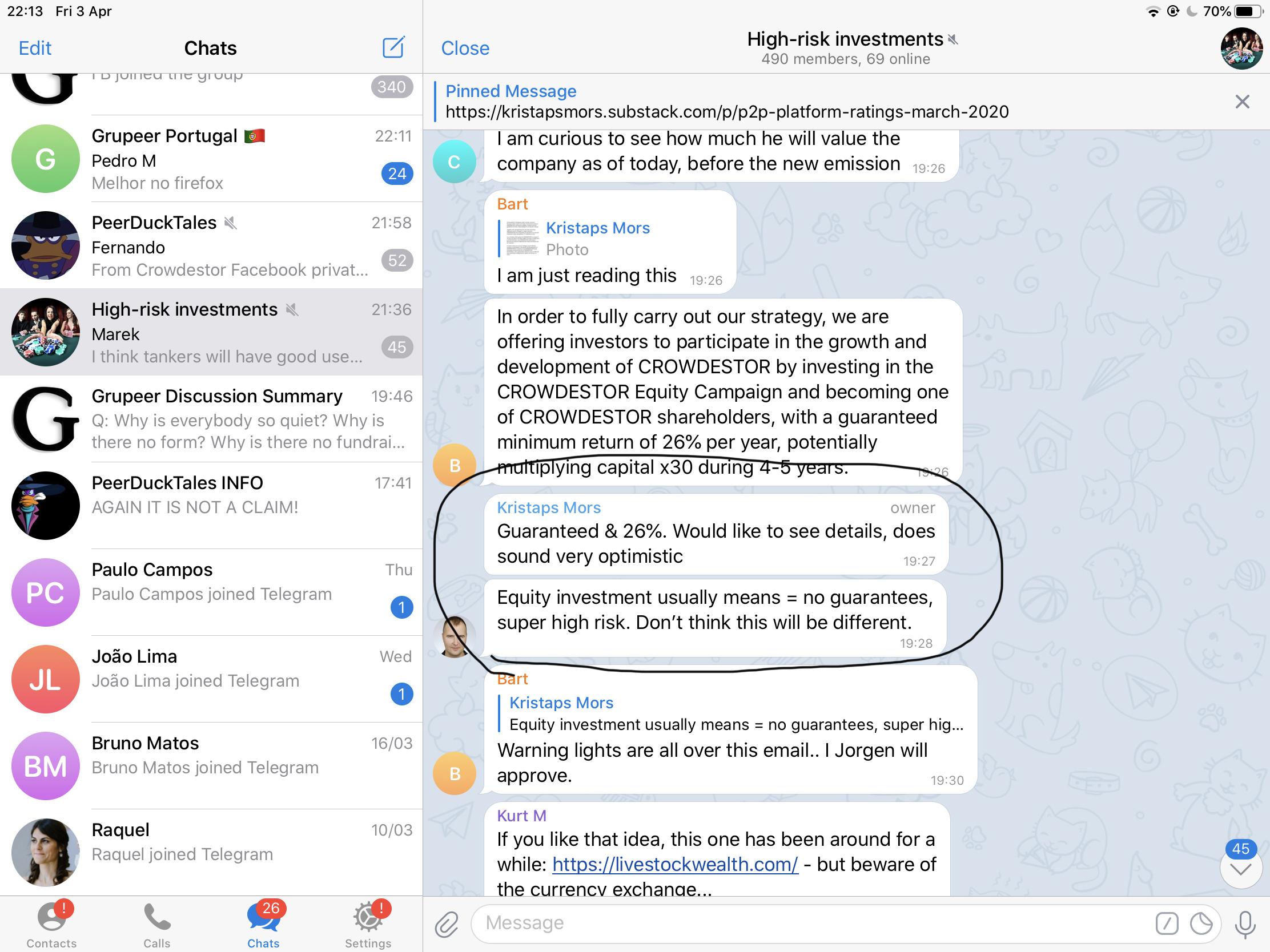 Desconheço. Reparo que há tugas em vários grupos Telegram, dos lesados na Envestio, Kuetzal, etc. e nos grupos do Pato, Kors, CrowdlendingGlobal.