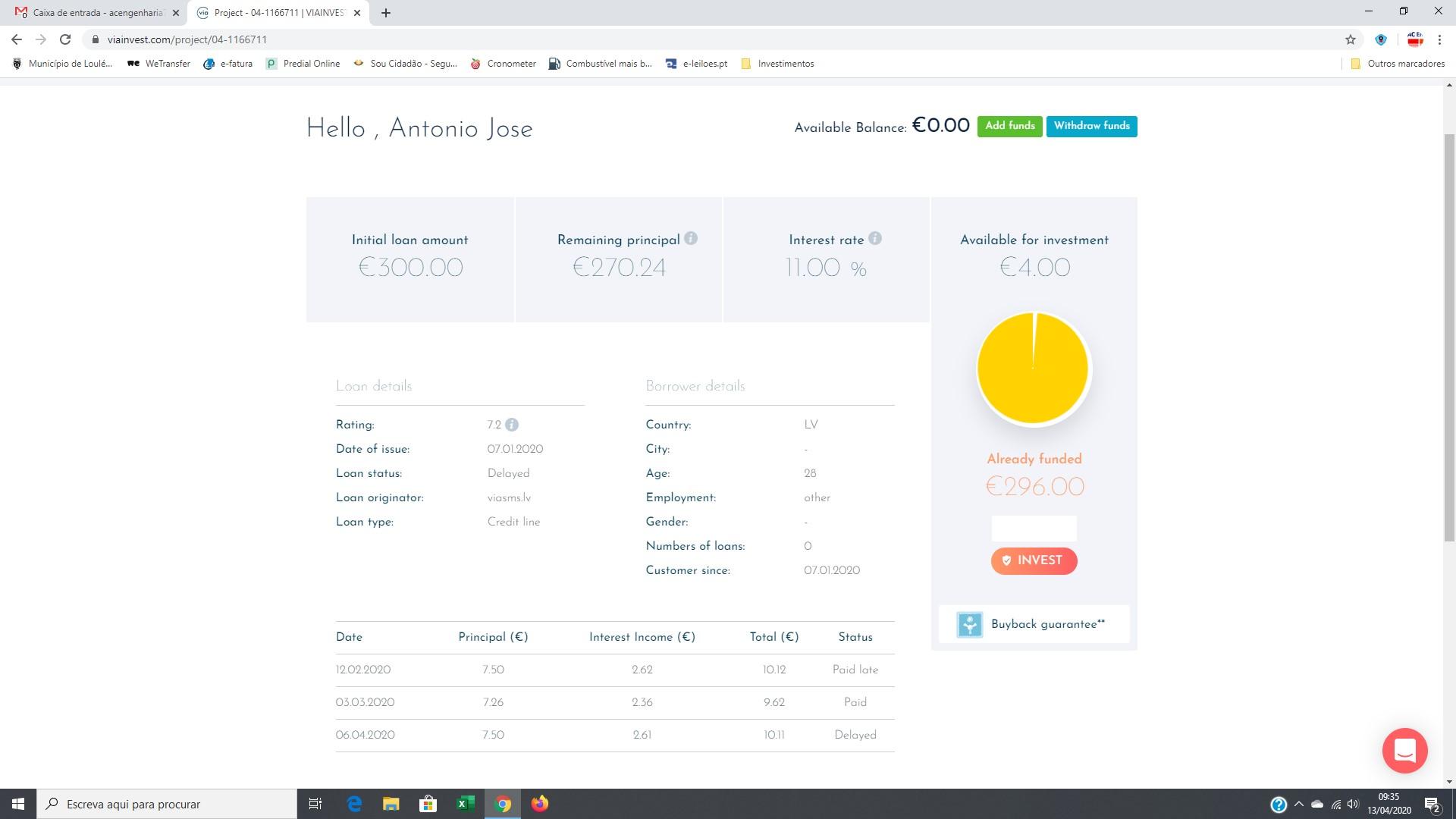 Viainvest foi das primeiras que investi (com  a Twino e Mintos)... E devia ter ficado quieto a partir dai.. :)