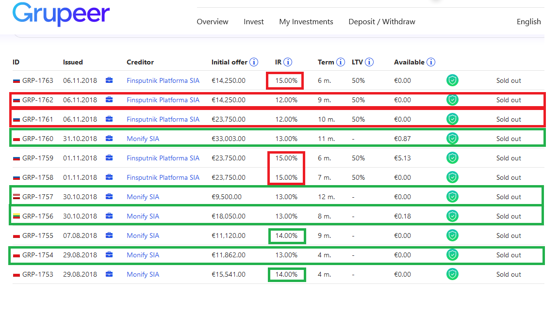 Já reparam na "manhoice" na Grupeer nos loans Russos de hoje (assinalados a vermelho)? Para os mais distraídos se calhar comeram Russos mais baratos que os "menos arriscados".