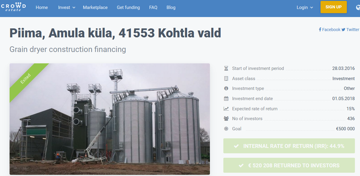 O mesmo nº de investidores: 436.  E o mesmo retorno expectável (conceito de retorno usado pela Crowdestate) de 15%.